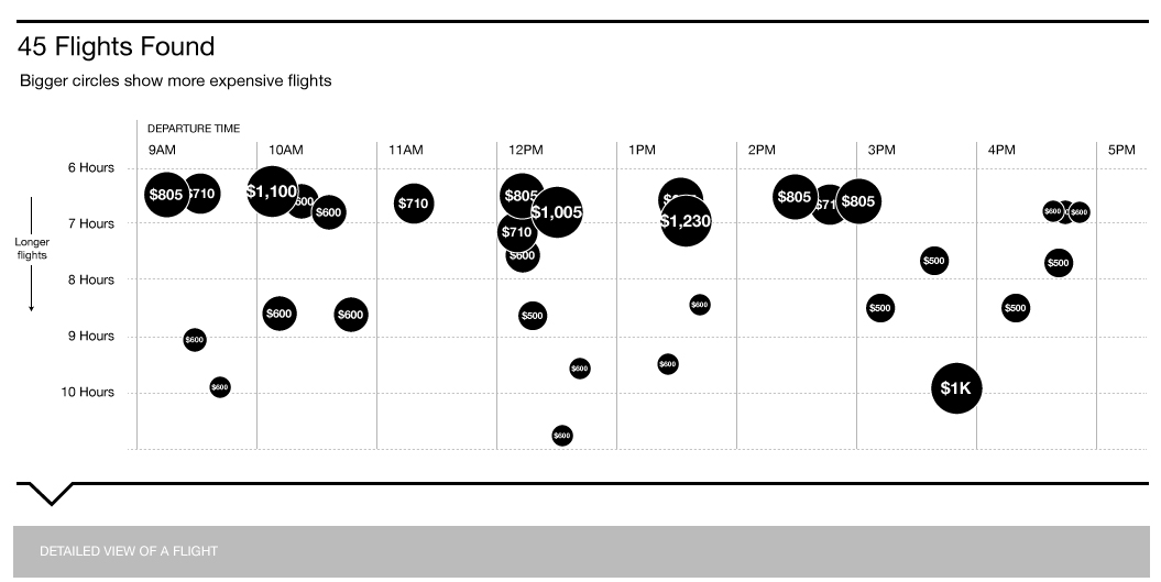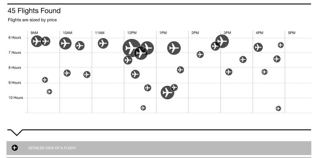Flight Concepts Posted on August 30, 2012 Visual explorations by Shan Carter (NYT information designer) for Expedia’s new Flights UI: Share this: Click to share on X (Opens in new window) X Click to share on Facebook (Opens in new window) Facebook Like Loading... Related