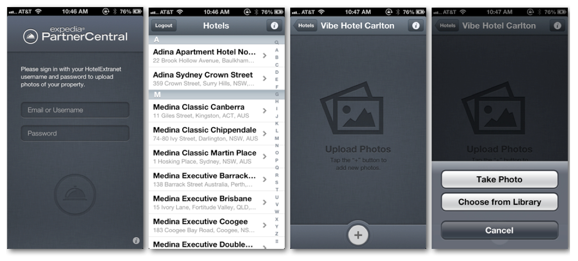 The idea: Provide hoteliers and market managers with a fast and easy way to snap, tag and send high resolution images to Expedia PartnerCentral (a supplier-facing CMS) with a custom iPhone app.